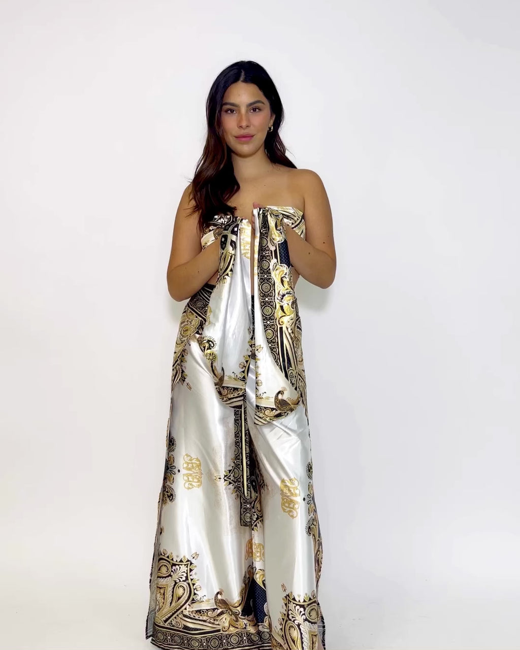 Introducing the Reina Collection, meaning queen in Spanish, this collection showcases baroque-inspired design elements, luxurious fabrics, and ornate gold details. We chose to craft this collection in 100% premium satin charmeuse giving our pieces an elegant gleam and graceful flow with each step.